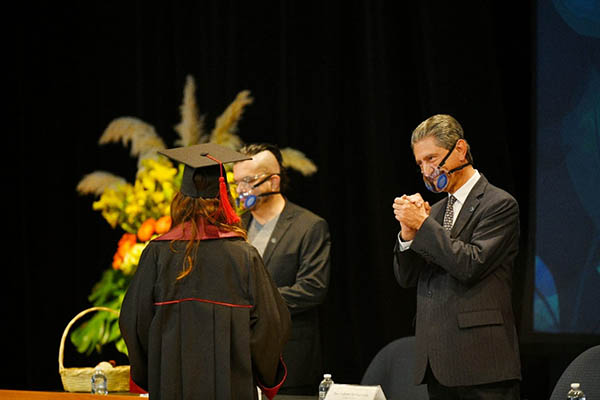 Al encabezar las ceremonias de terminación de estudios de Primavera y Otoño 2020, el Rector manifestó su deseo de que las circunstancias hubieran permitido que las familias, amigos, profesores y profesoras estuvieran acompañándoles, pero que el cuidado de los demás es un compromiso que se asume con gusto e instó a seguir las medidas de prevención recomendadas como un ejercicio de libertad en el que se elige ser solidarios.